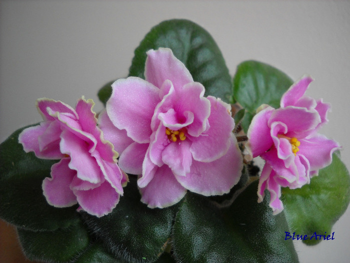 (E.Korshunova) Double bright pink large star (6 cm) /wide white-green wavy edge (2mm). Medium green, ovate. Standard.