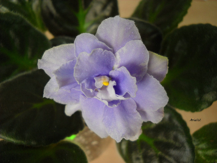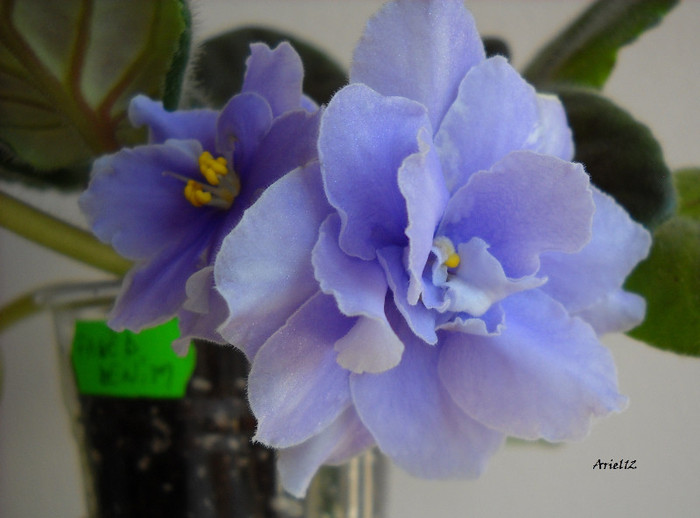 (S. Sorano) Semidouble-double light blue large wavy star/variable green tips. Medium green. Standard